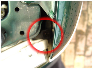 Unscrew the cover on the back of the headlight and disconnect the plugs by pulling the connectors off the back of the bulbs. Also disconnect the plug for the height adjustment motor. The next step is to unscrew the big phillips screw in the wheel-well at the very end of the lower part of the bumper. Next is the plug shown here. Theoretically it is a plug that can be taken out easily by pulling out the center plug, but I ended up killing both and having to buy new ones (part number 30820141, about 80 cents a piece). I guess that plastic this old isn't flexible enough to withstand pulling it in the wrong places...